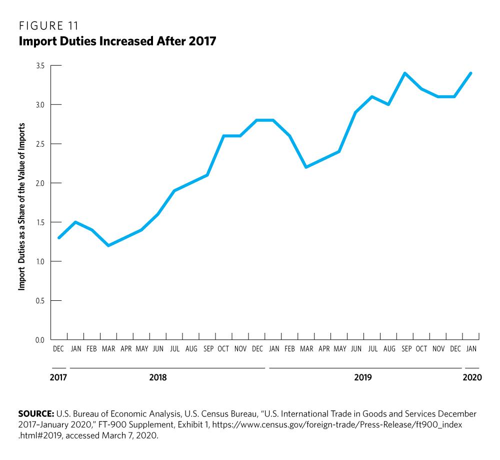 22 Mary Amiti, Stephen Redding, and David Weinstein, “The Impact of the 2018 Trade War on U.S. Prices and Welfare,” National Bureau of Economic Research Working Paper no. 25672 (2019), www.nber.org/papers/w25672.