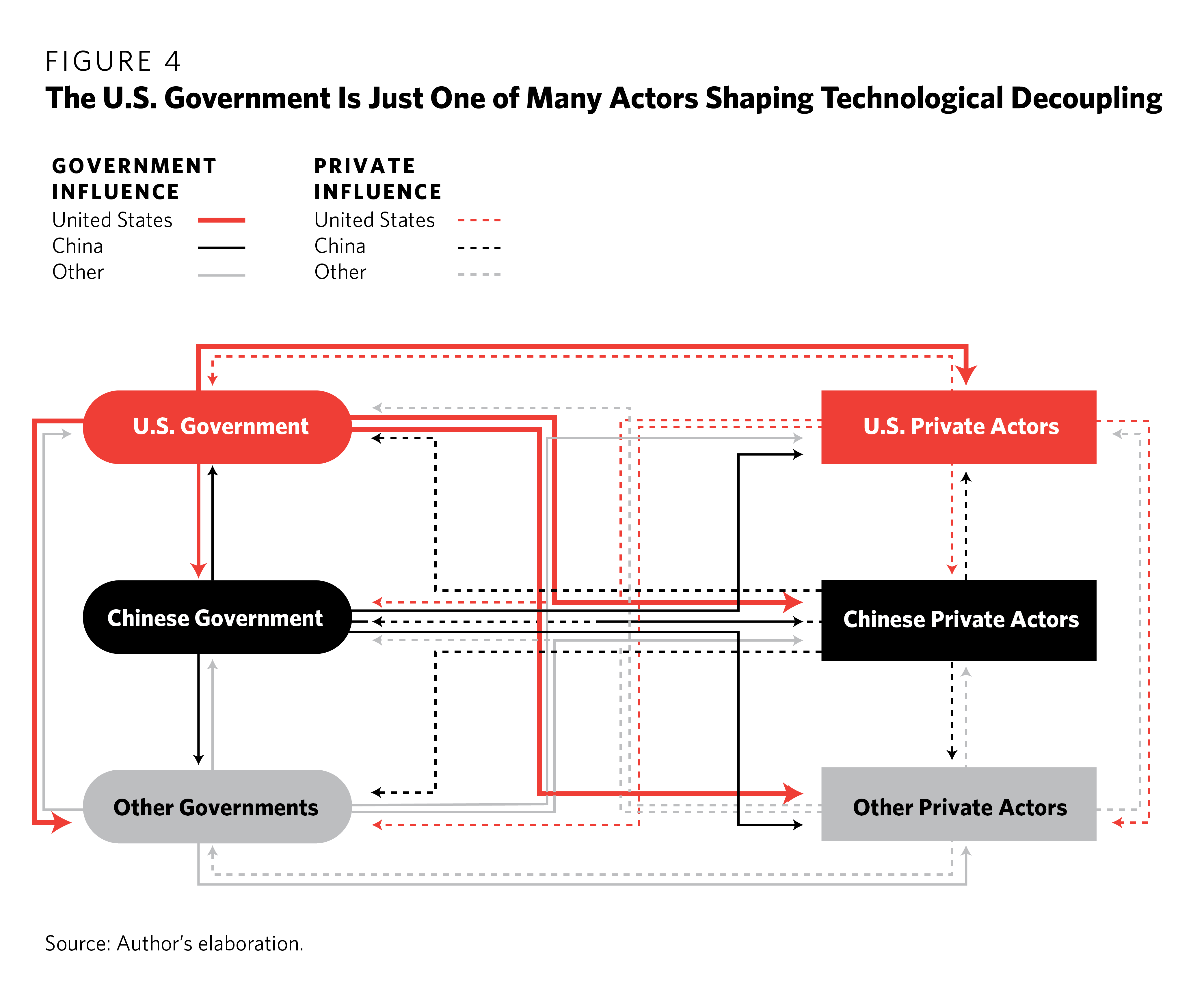 A centrist strategy of this kind will also help the U.S. government maintain its control over the decoupling process—keeping its pace and scope aligned with American needs. U.S. policymakers have enjoyed the luxury of control during recent years, as Washington took the initiative while Beijing, other governments, and private entities around the world were comparably cautious and reactive in technological decoupling. But as decoupling accelerates, these outside actors increasingly seek to seize initiative for themselves—for example, preempting future U.S. restrictions by acting first to reduce technology interdependence on their own terms. Meanwhile, decoupling has slowly begun to shift power within the United States toward political figures, commercial actors, and national security voices who advocate even stronger restrictive measures.